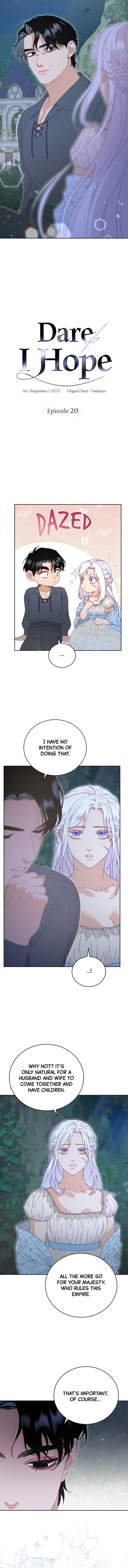 Dare I Hope… Chapter 20 includes 15 comic pages in the main reading order. Published January 20, 2026 and updated March 17, 2026.
