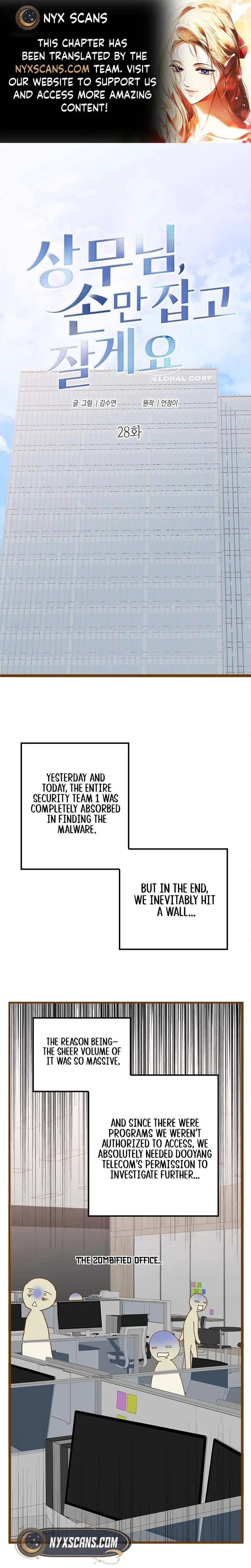 Executive, Let’s Just Hold Hands and Sleep Chapter 28 includes 51 comic pages in the main reading order. Published March 22, 2026 and updated March 29, 2026.