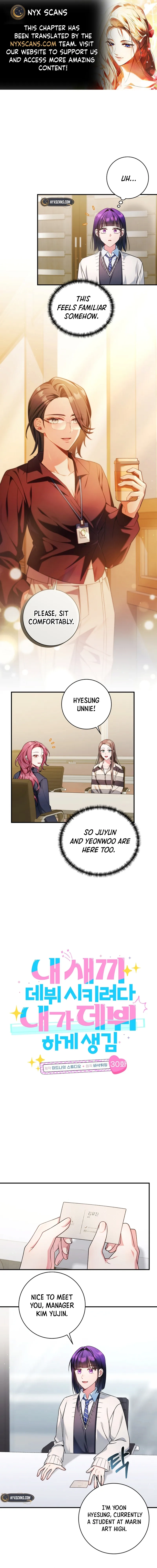 I Tried to Debut My Kid, But Ended Up Debuting Myself Chapter 30 includes 15 comic pages in the main reading order. Published October 8, 2025 and updated March 16, 2026.