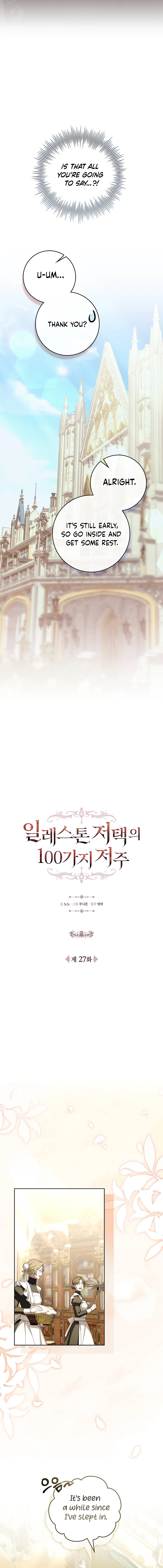 The 100 Curses of the Illeston Mansion Chapter 27 includes 17 comic pages in the main reading order. Published October 22, 2025 and updated March 17, 2026.