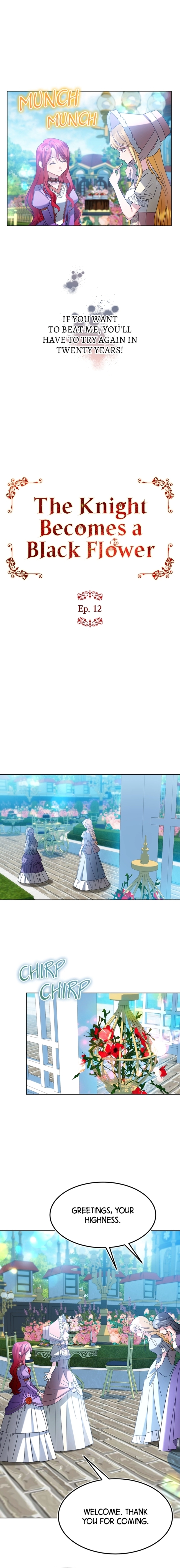 The Knight Becomes a Black Flower Chapter 12 includes 14 comic pages in the main reading order. Published February 26, 2025 and updated March 17, 2026.