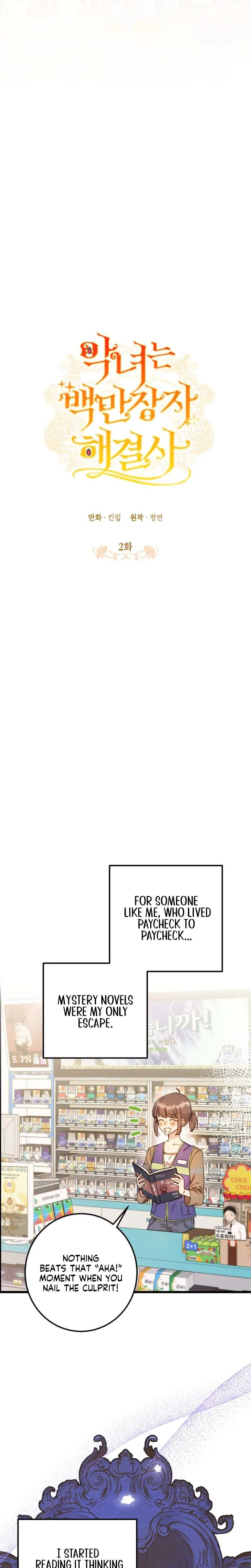 The Villainess is a Millionaire Solver Chapter 2 includes 23 comic pages in the main reading order. Published March 21, 2026 and updated March 21, 2026.