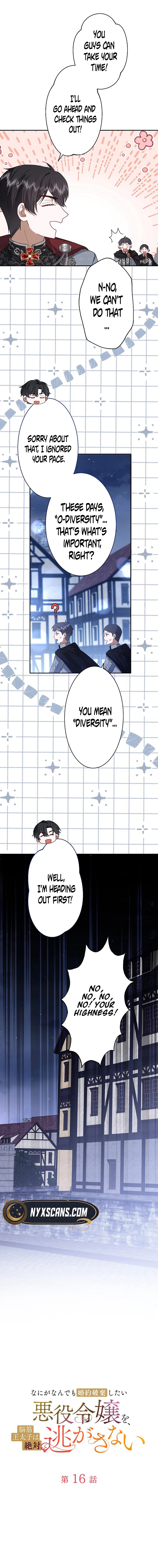 The Villainess Who Absolutely Wants to Break Off Her Engagement Can't Escape the Muscle Brain Prince Chapter 16 includes 13 comic pages in the main reading order. Published October 29, 2025 and updated March 16, 2026.